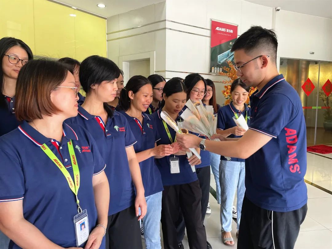 在亞當(dāng)斯各部門主管的行動(dòng)下,一束束精心包裝的向日葵送到女員工的手上,收到花束的每一位女員工都露出了美麗笑容,在感到喜悅的同時(shí),她們對(duì)公司如此細(xì)心、體貼的活動(dòng)給予了高度贊揚(yáng)。