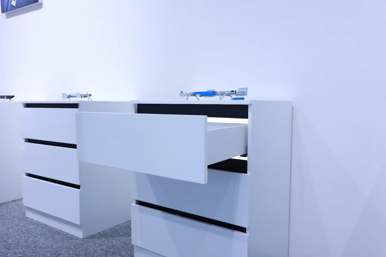 本屆展會(huì),亞當(dāng)斯攜五金革新成果及家居場(chǎng)景解決方案參展。全面展現(xiàn)我們?cè)谖褰鹁苤圃斓暮诵母?jìng)爭(zhēng)力。特別是亞當(dāng)斯ADS125系列鉸鏈、亞當(dāng)斯M系列二節(jié)隱藏滑軌、亞當(dāng)斯MK03系列三節(jié)隱藏滑軌等產(chǎn)品,多款搭載專利技術(shù)的滑軌、鉸鏈等創(chuàng)新產(chǎn)品。憑借其突破性的結(jié)構(gòu)設(shè)計(jì)和匠心工藝,生動(dòng)詮釋了"精工五金"理念。