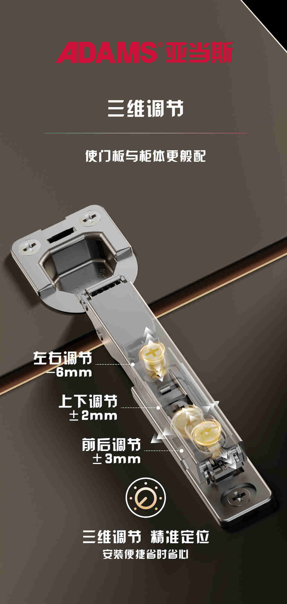 柜門調節(jié)很靈活,只需要擰動螺絲就能調節(jié)柜門間的縫隙,安裝調節(jié)易如反掌,省時省力。