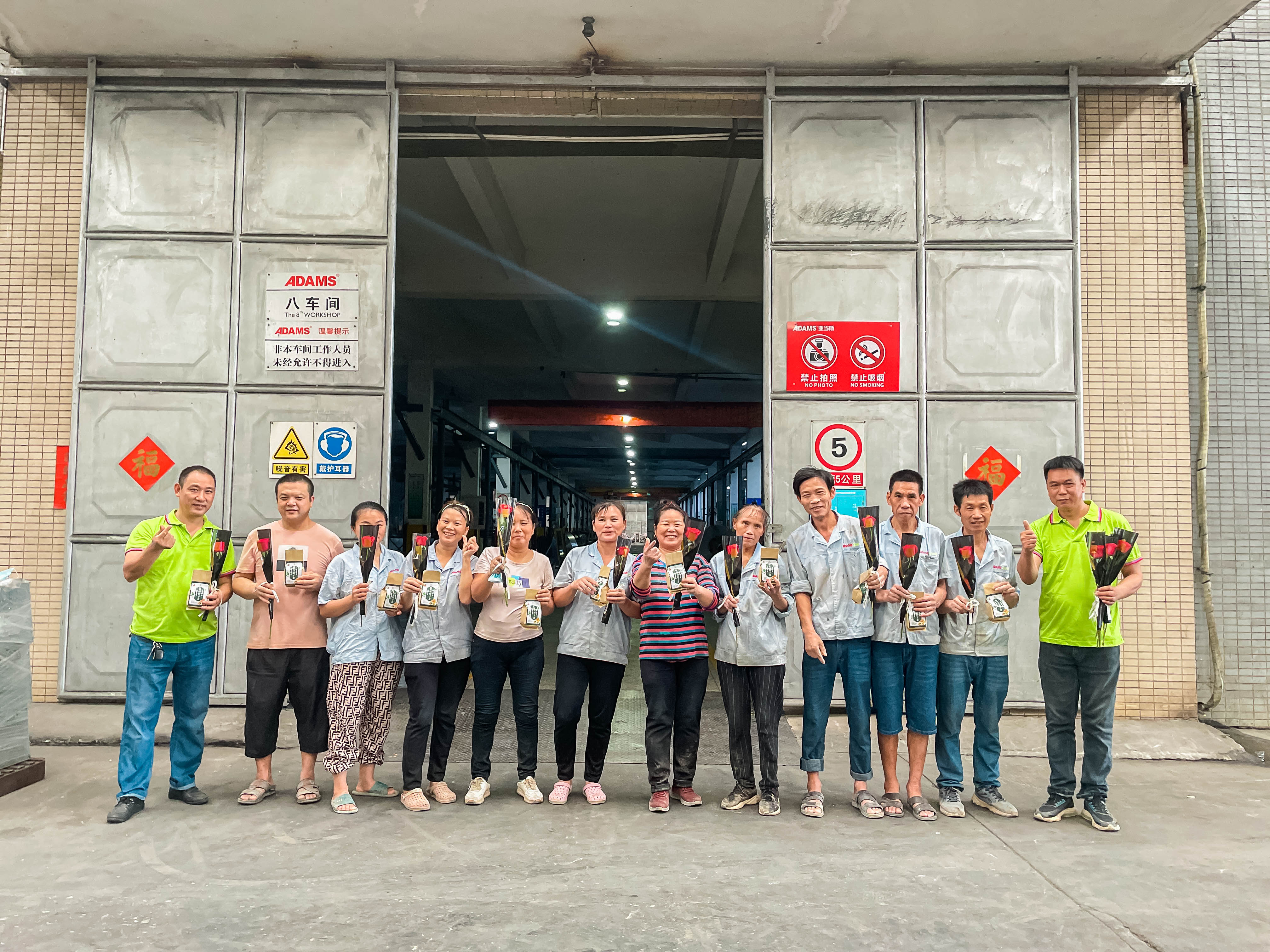 在七夕下午,正在崗位上辛勤工作的員工們,收到了來自亞當(dāng)斯領(lǐng)導(dǎo)班子的節(jié)日祝福和鮮花禮物。一支支鮮艷的花朵,一份份養(yǎng)生的禮品,代表著亞當(dāng)斯領(lǐng)導(dǎo)對(duì)恪盡職守的全體員工最誠(chéng)摯的問候,同時(shí)表達(dá)對(duì)亞當(dāng)斯員工的七夕佳節(jié)的美好祝福。