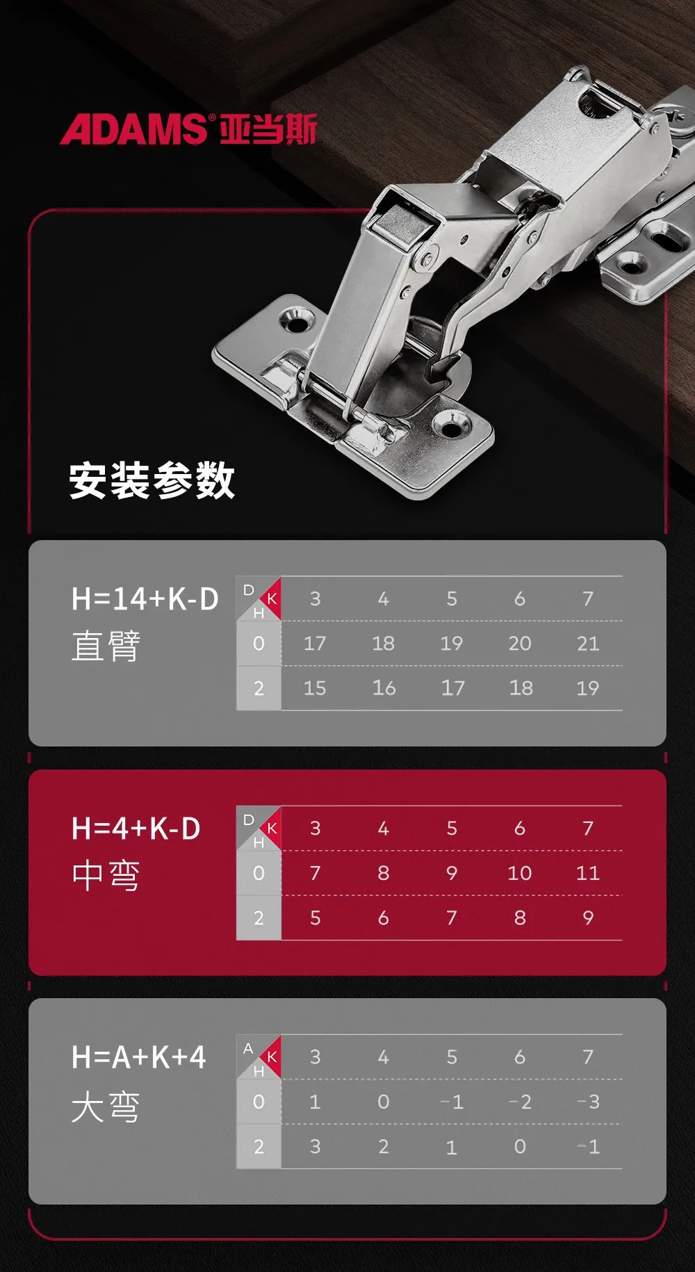 ADS165°大角度鉸鏈,該產(chǎn)品使用于不同尺寸、高度的柜門(mén),例如:轉(zhuǎn)角處的櫥柜、高柜門(mén)、特殊位置的柜門(mén)等。
