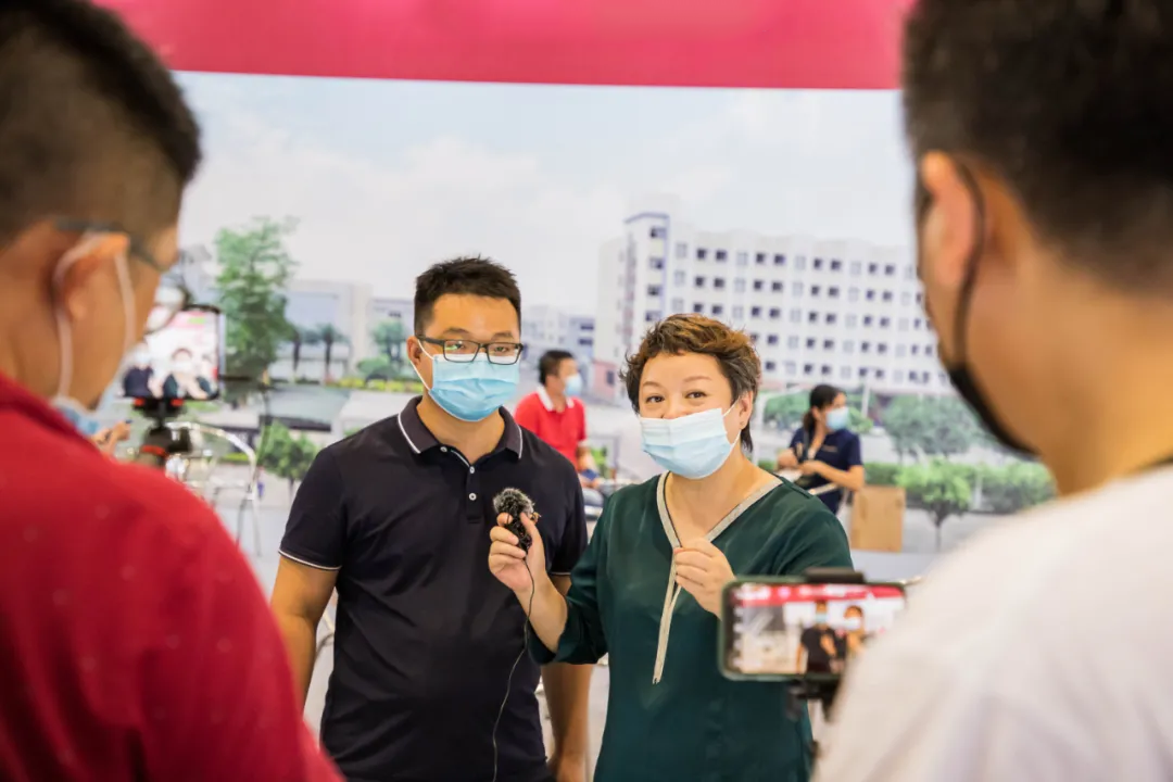 ▲銷(xiāo)售人員接受中國(guó)五金制品協(xié)會(huì)家具五金專(zhuān)委會(huì)秘書(shū)長(zhǎng)采訪
