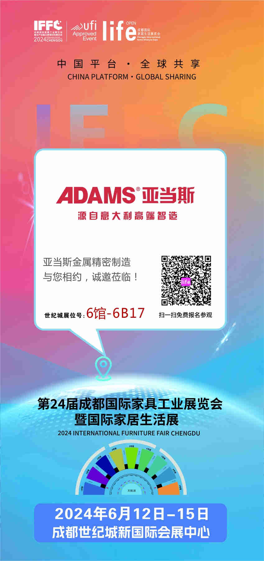 2024年6月12-15日,第24屆成都國(guó)際家具工業(yè)展覽會(huì)暨國(guó)際家居生活展將在成都世紀(jì)城新國(guó)際會(huì)展中心舉辦。作為中國(guó)五金行業(yè)創(chuàng)新企業(yè)之一,亞當(dāng)斯展位號(hào):【6館6B17】將攜新產(chǎn)品、新技術(shù)、新五金搭配方案亮相本次展會(huì),以五金與人文匠造家居生活美學(xué)。