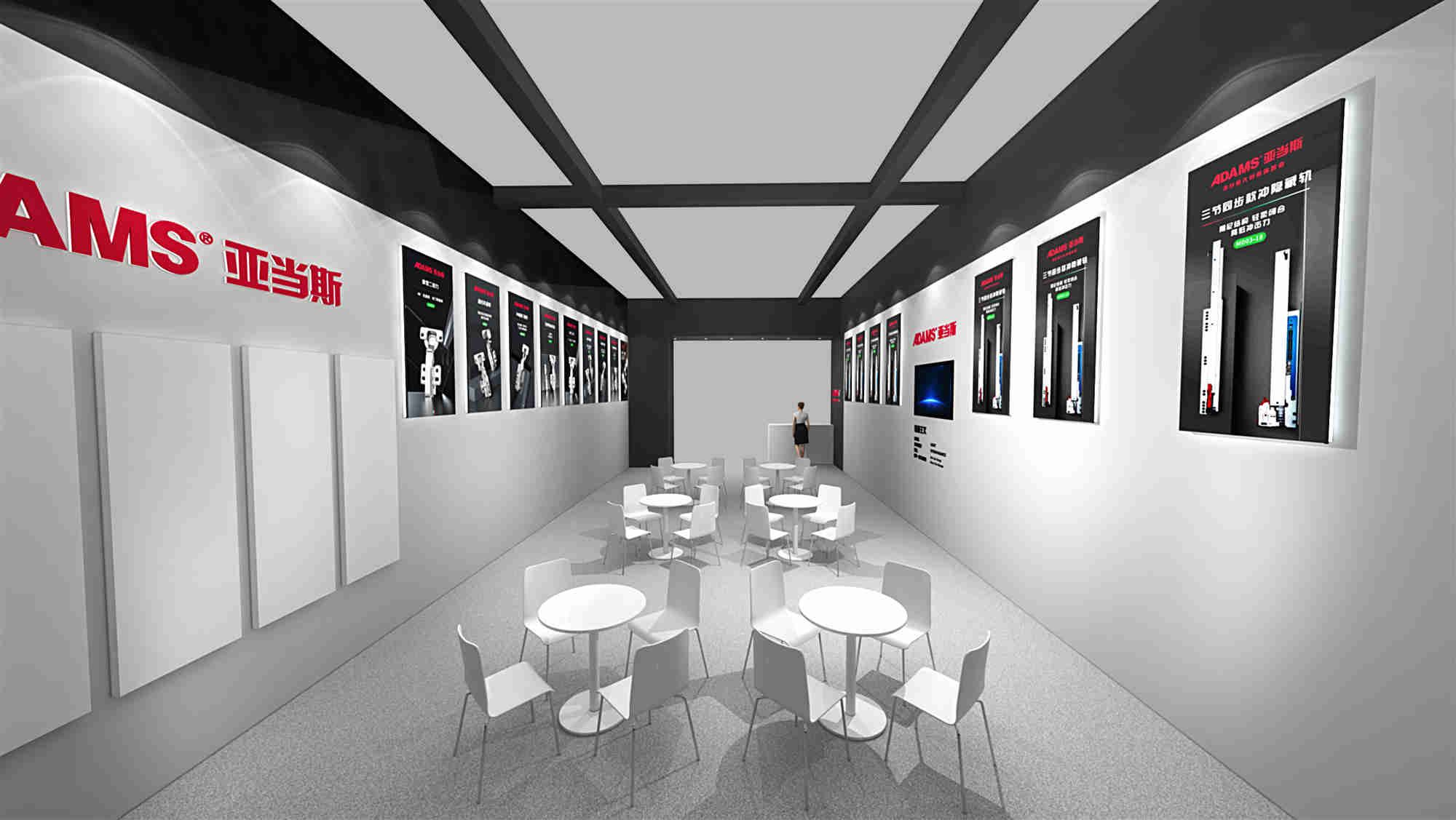 亞當(dāng)斯展位以現(xiàn)代極簡(jiǎn)風(fēng)格設(shè)計(jì)以功能性為主,簡(jiǎn)約不是簡(jiǎn)單,獨(dú)具格調(diào)。展位裝飾刪繁就簡(jiǎn),去除造作偽飾,大方淡雅,將展品與觀眾緊密相連,讓人在互動(dòng)中感受到亞當(dāng)斯五金產(chǎn)品帶來(lái)的無(wú)限魅力。