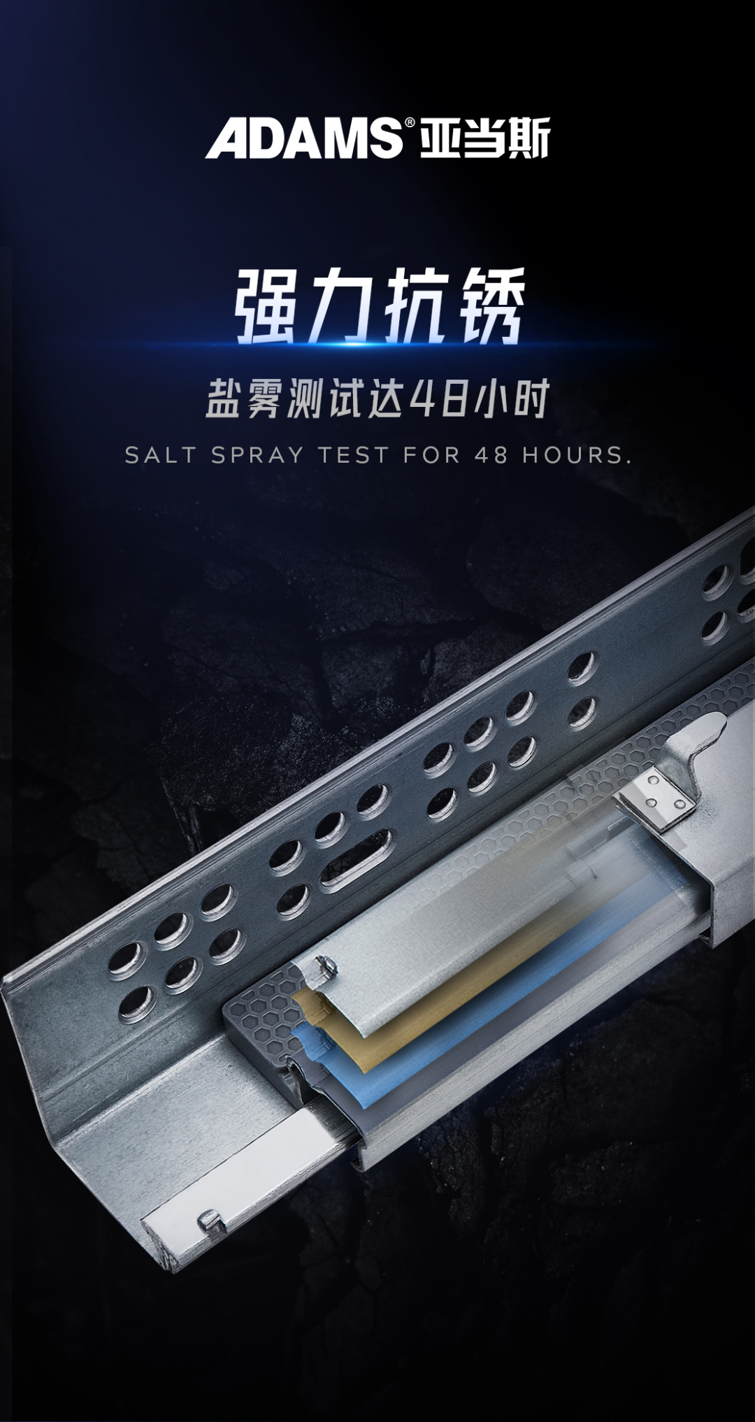 滑軌經(jīng)歷48小時鹽霧測試,耐腐蝕性強,表面不易劃傷。