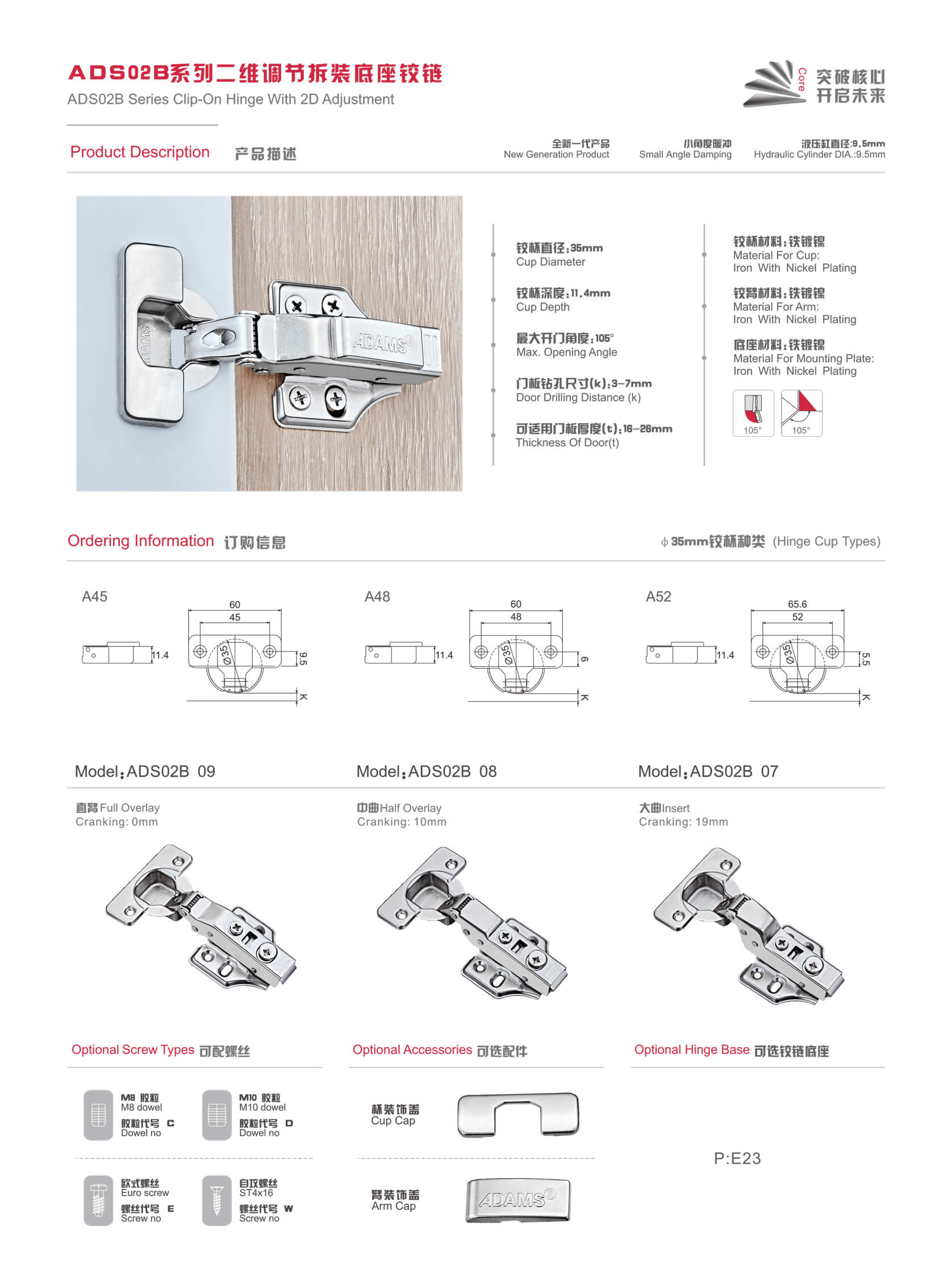 ADS02B系列二維調(diào)節(jié)拆裝底座鉸鏈